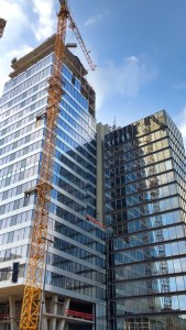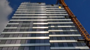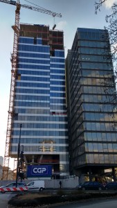 V preteklih mesecih so se mnoge ljubljanske stoječe gradbene jame spet spremenile v gradbišča. Popolna stagnacija velikih in razvpitih gradbenih projektov, ki so iz prestolnice v kriznih letih ustvarili naluknjano lunarno pokrajino začasnih parkirišč in minimalno zaščitenih špekulativnih brezen, je očitno minila. Krasno, tako zavoljo novih investicij kot tudi zaradi na rob preživetja prignano arhitekturno in gradbeno stroko. Simbol novega vitalizma kapitala in gradbeništva tega šele kratkotrajnega gibanja krivulj navzgor mora prav gotovo postati nova stolpnica na Bavarskem dvoru, ki bo v dobrem letu postala dom hotela Intercontinental. Gradbišče je do pred kratkim, ko je stolpnica dosegla končno višino 81 metrov, vnašalo v poslovno središče Ljubljane prav ameriški tempo gradnje: betonski skelet, ki mu je bliskovito sledila končna zasteklitev, se je vsakih nekaj dni povišal za eno nadstropje.