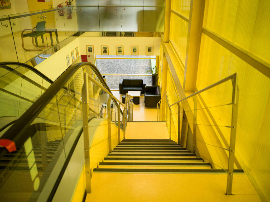 Leta uporabe so idejo o odprtem in razlivajočem se tlorisu postavila na vidno preizkušnjo. Ko so komercialne vsebine umaknili iz nadstropij in skrčili na pritlično etažo, so umanjkani prostor zavzele v horizontalo, zunaj prvotno predvidenega območja. S časom dodani boksi in pregrade si tako prilaščajo javne površine, s tem pa onemogočajo fizično in vizualno pretočnost. Uporabniki so se v takem prostoru dodatno udomačili, čemur lahko pripišemo tudi opazne poškodbe in servisno uporabo manj izpostavljenih vogalov izvorno enovite javne površine. Srednji kubus je bil z menjavo vsebine deležen adaptacije za potrebe novega izobraževalnega programa, tloris je bil razdeljen in pregrajen z manjšimi prostori in pisarnami. Ob pogledu na zastekljene pritlične prostore, ki so zastrti z zavesami, žaluzijami ali matiranimi prevlekami stekel, dobimo še en namig o izkušnji uporabnikov danes – pred kom ali čim se skrivajo?