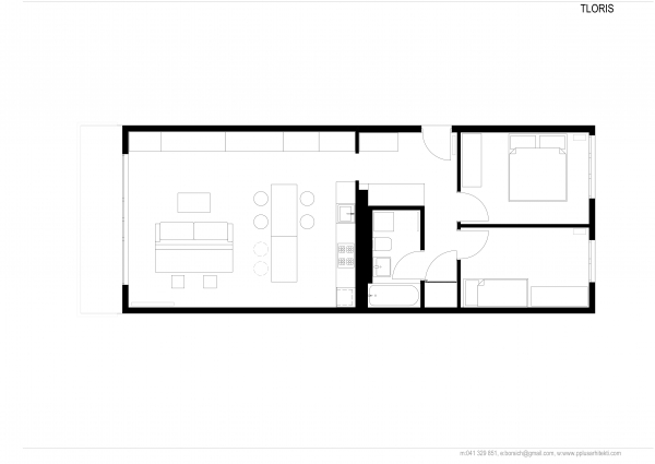 Stanovanje je bilo že v osnovi arhitekturno dobro zasnovano in je omogočalo vzpostavitev enotnega bivalnega prostora, torej kuhinje, jedilnice in dnevne sobe v enem prostoru. Strankam vedno predlagamo združevanje prostorov na ta način, namreč odprt večji prostor ponuja bistveno boljše možnosti interakcije med posameznimi dejavnostmi, sploh kadar gre za družinsko okolje. Priprava hrane oz. kuhanje je danes družabno početje, sodelujejo lahko vsi družinski člani in prijatelji na obisku.
