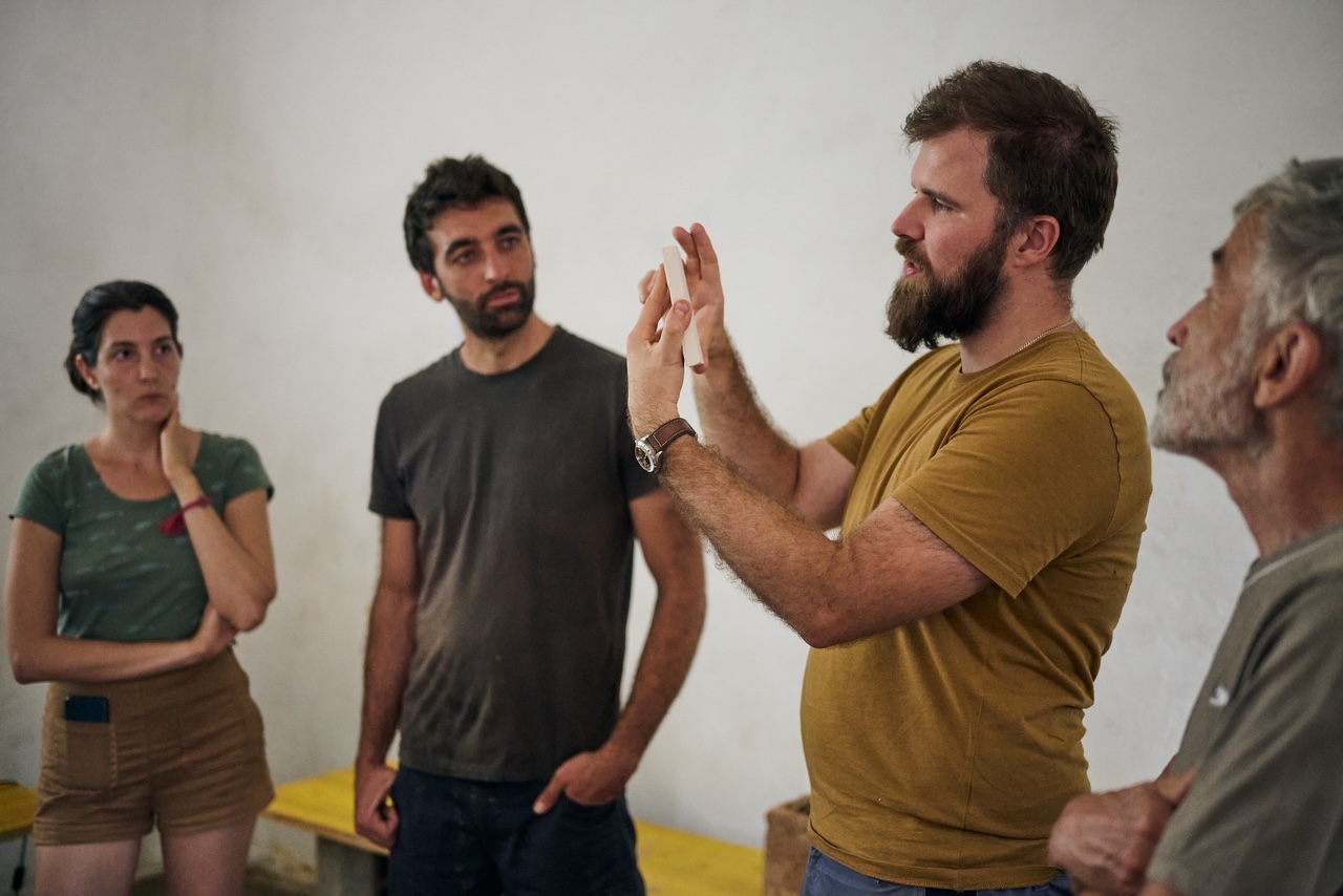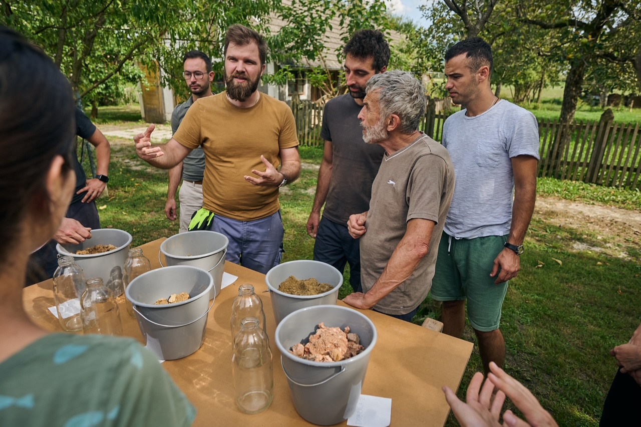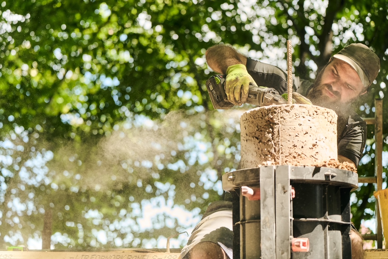 V Centru za gradnjo z zemljo je to gravitacijo zemlje zelo jasno čutiti. Skupaj z udeleženci letošnje delavnice smo pet dni pripravljali mešanico ilovice in peska ter neutrudno zbijali steber za stebrom. Iskali smo izboljšave, popravljali napake in pripravljali testne kocke. V času počitka pa je marsikdo vzel v roke še kepo gline in jo začel oblikovati. Še zvečer so ob ognju nastajale skodelice, skledice, naprstniki in drobne skulpture.