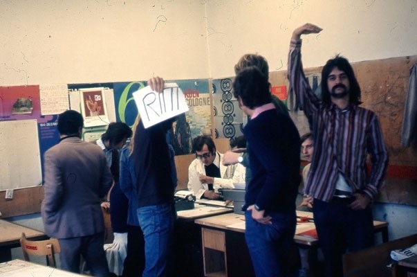 Kot odmev na pariška dogajanja se je tudi v Ljubljani izoblikoval kritiški krog s težiščem na Filozofski fakulteti, ki je imel velik vpliv na takratna reformna gibanja. Študentski nemiri so dosegli vrhunec z zasedbo Filozofske fakultete leta 1971, zatem pa la lahko govorimo o zatonu študentskega gibanja kot politične akcije. Študent arhitekture Vinko Torkar je ob ugotovitvi o ugašanju gibanja na filozofski fakulteti že zaslutil premik žarišča na druge, dotlej pasivne fakultete in zapisal, da je v »sobi 25« že dve leti delovala »alternativna univerza.« Opisal je način alternativnega akcijskega študija arhitekture (skupina študentov opravi začetno, informativno študijo o perečem problemu, seznani z njo odgovorne nosilce oblasti, jo po vrnitvi s »pohoda« skozi institucije dopolni in objavi, nato pa delo prevzamejo projektantske organizacije, saj je vloga alternativnega arhitekta odkrivanje in kritično raziskovanje ter ne realizacija in nelojalna konkurenca živemu delu).