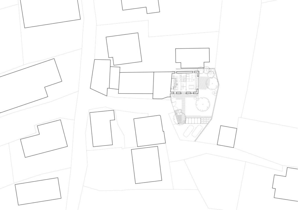 Na tem mestu nastopi arhitektura, ko iz mnogih izhodišč projekta, tudi najbolj banalnih, gradi novo celoto. Že opisana intervencija se prilagaja tako obstoječemu zidu z vsemi odprtinami, kot tudi tlorisni zasnovi enodružinske hiše. Na večkrat prehojeni poti od enega do drugega pa mora ohraniti še svojo jasno zasnovo. In končno, ker zgolj ta jasnost ni dovolj, mora v prostoru vzpostaviti še nekaj, kar sega onkraj koncepta in se uresniči v bivanjski izkušnji uporabnika.