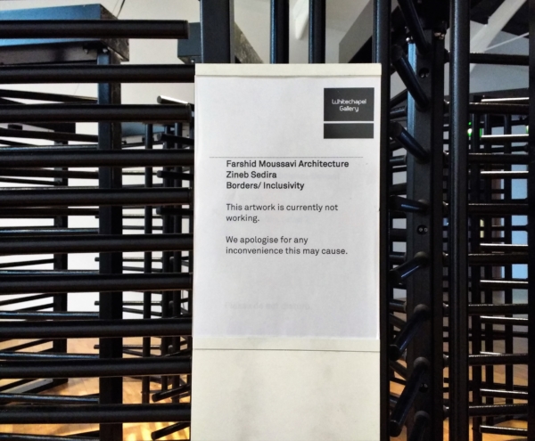Morda je vsaj neuspeh razstave v nekem smislu uspeh, če namreč jasno pokaže paralizo umetnikov in arhitektov, da bi mislili prihodnost. Nekaj je tudi čisto duhovitih in zabavnih ciničnih komentarjev sodobnih razmer, kot je recimo popolna fetišizacija in komercializacija domnevne slike Leonarda da Vincija Salvator Mundi, za katero so David Kohn arhitekti in umetnik Simon Fujiwara zasnovali maketo fiktivnega muzeja. Morda najboljši razstavni eksponat pa je povsem nenačrtovan. Ob mojem obisku razstave je inštalacija arhitektov Farshid Moussavi in umetnice Zineb Sedira samevala. Kompozicija devetih krožnih varnostnih vrat z naslovom Meje/Inkluzivnost komentira zelo akualno tematiko meja, begunstva in prehodnosti. Vendar pa je bila trenutno pokvarjena, tako da se ni dalo vstopiti vano. Namesto tega je na rešetkah visel napis, ki je oznanjal, da Meje/Inkluzivnost ne delujejo. Tudi sam bi se težko spomnil boljšega zaključnega komentarja.