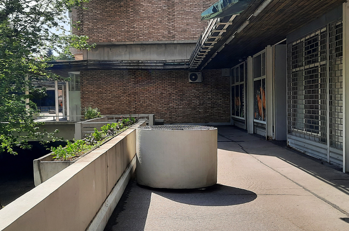 V povsem drugačni vlogi betonsko cev znova srečamo v njegovem poslednjem velikem delu, na Peklenskem dvorišču Križank, kjer je odrezane segmente cevi vgradil v tlak, ki je v celoti izdelan iz gradbenih ostankov. Tako kot v povsem drugačnih okoliščinah Rotija Badjura, do nedavnega spregledana predstavnica humanističnega modernizma, se nam ob tej razsežnosti svojega dela tudi Plečnik vedno znova dokazuje kot mojster ponovne uporabe, ne samo klasičnih in vernakularnih likovnih elementov, ampak vsaj toliko tudi materialov. In tudi v tem (p)ostaja aktualen danes, ko je krožno gospodarstvo z zmanjševanjem odpadkov in vgrajene energije v gradbeništvu eden osrednjih izzivov, ki so pred nami. V primerjavi z raznovrstnimi sodobnimi dizajnerskimi projekti njegov pristop navdihuje za rešitve, ki na konceptualni redukcionizem modernosti odgovarjajo s simbolno večplastnim vzpostavljanjem kraja.