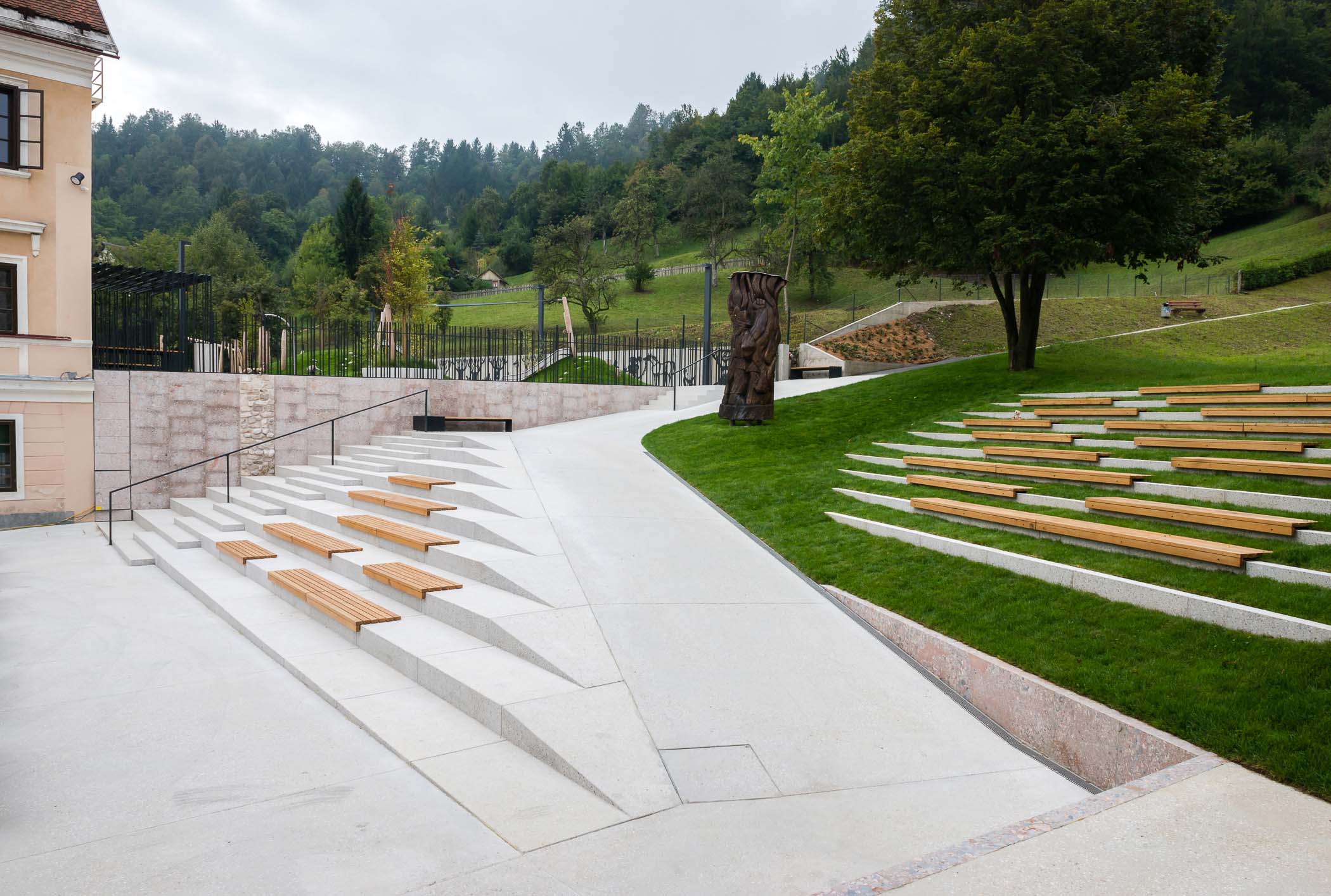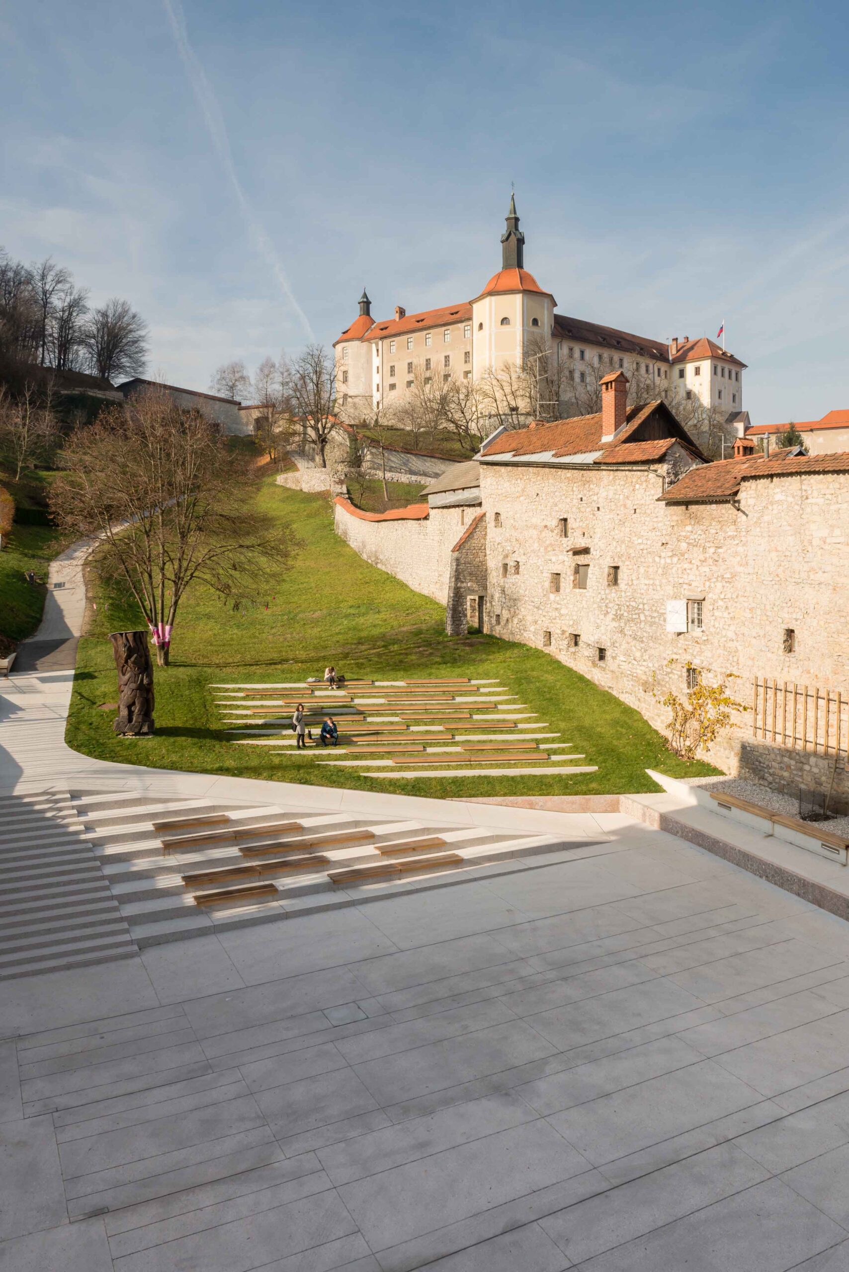 Obstoječi trg so arhitekti preuredili tako, da lahko po potrebi postane prizorišče za dogodke – lesena sedišča kot nalašč za spremljanje škofjeloškega pasijona, ki se tu odvija vsako leto. Tudi pot proti gradu, ki je bila prej zaradi neustrezne ureditve trga nekoliko izgubljena in težko prepoznavna, je zdaj dobila zadosten prostorski poudarek. Trg, mimo katerega smo se prej le na hitro sprehodili, pa tako postaja novo prostorsko vozlišče, kraj zadrževanja in srečevanja.