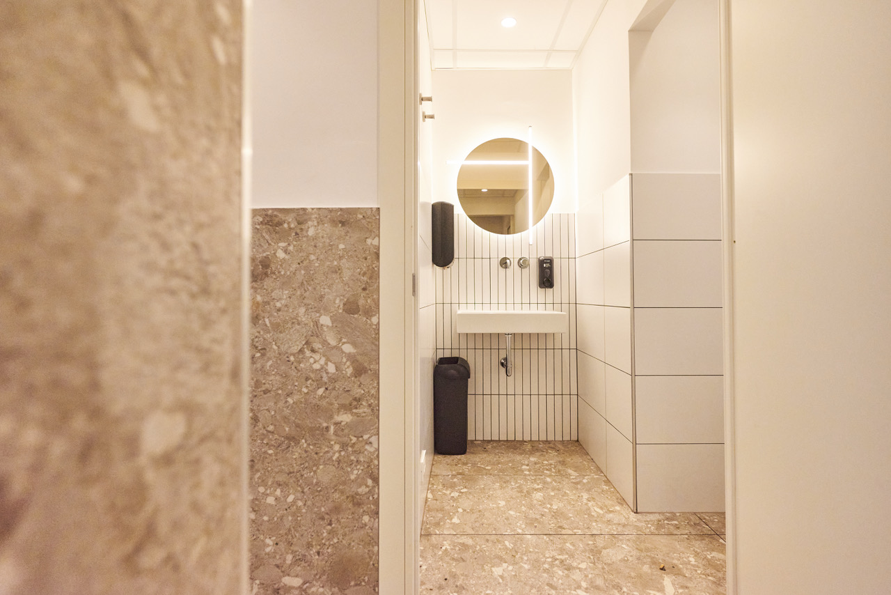 Barvna shema nas popelje od rdečih tonov terre rose in sivin kraškega kamna do intenzivne morsko modre barve Trsta. Tem barvam in temam sledi tudi unikatna stenska ilustracija, ki jo je izdelala slovenska ilustratorka Nea Likar.