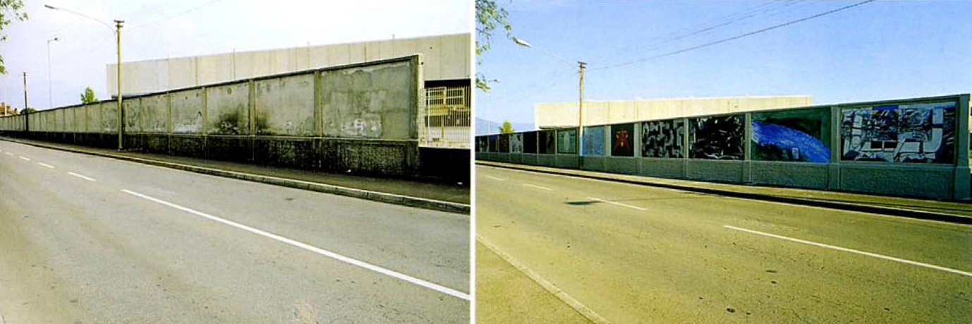 Med zanimivostmi tega območja najdemo sodobna dela velikega pomena (in tudi velikega formata) – čeprav bi morda glede na njihovo slabo ohranjenost morali reči »smo lahko našli«, kar je povsem v skladu z linijo raziskav in eksperimentov, ki jih izvajata Mattia Campo dell’Orto, eklektični umetnik iz Monfalconeja, in združenje Macross Acu. V mislih imam dva več kot 200 metrov dolga kolektivna murala, ki so ju na pobudo Albe Gurtner med letoma 2000 in 2001 ustvarili umetniki in študenti v Podgori, in sicer »zid časa«, ki na 24 panelih prikazuje zgodovino družine najmlajše osebe v soseski, in »zid petih jezikov«, sestavljen iz 30 panelov, na katerih se verzom v štirih jezikih, značilnih za čezmejno območje, pridružuje peti, univerzalni jezik – jezik umetnosti.[7]
