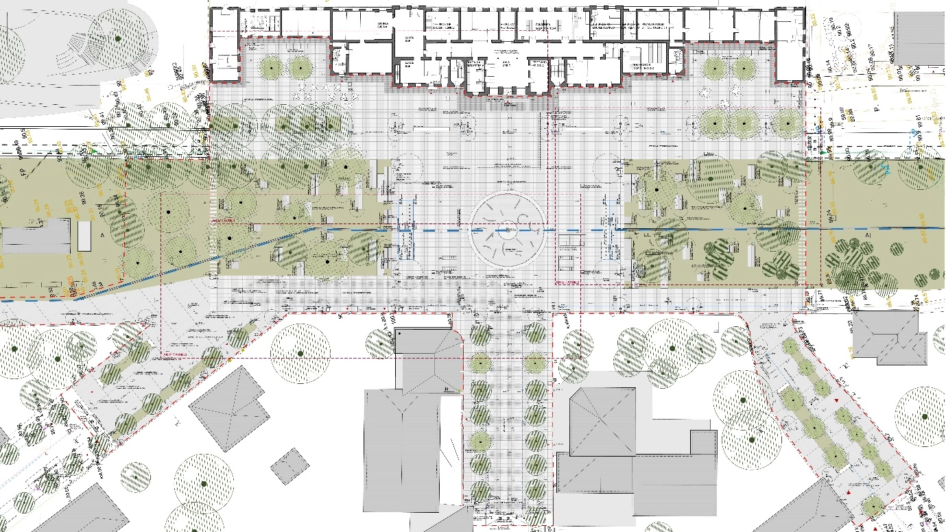 Splošni cilj je po mnenju arhitektov doseči »enotno podobo na celotnem območju posega, tlakovati in dvigniti del dostopnih cest do trga, kjer se stikajo z osrednjim prostorom, in jih z nizko rampo, visoko približno 20 cm, dvigniti na enako višino kot tlakovanje samega trga« (poročilo, str. 57).