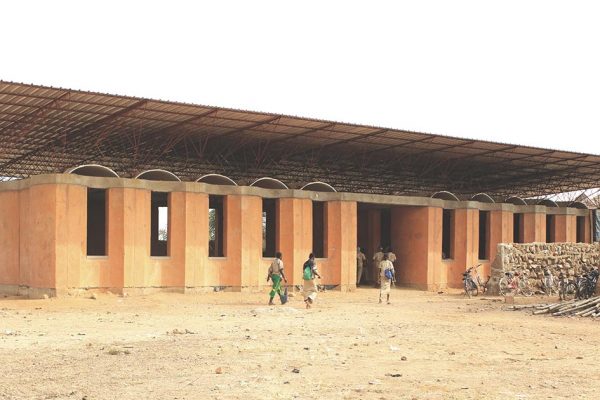 Šola v vasi Gando, Burkina Faso, je zgrajena iz tradicionalnih materialov, z lokalno tehnologijo gradnje in z velikim poudarkom na aktivni participaciji lokalnih prebivalcev. Glina, pridobljena na mestu gradnje, je premešana z agregati in cementom, in uporabljena za gradnjo zidov.