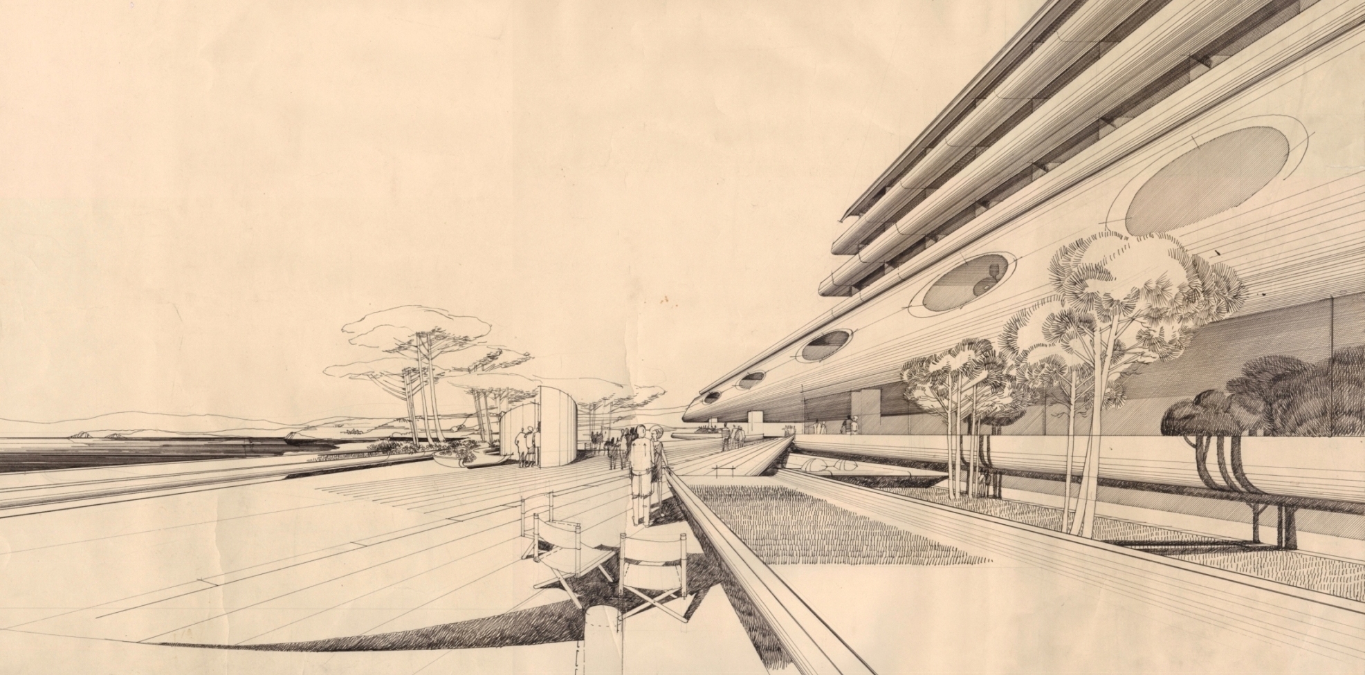 Kristlova risba za nerealizirani bolnišnični kompleks v Kuvajtu (vir: MAO)