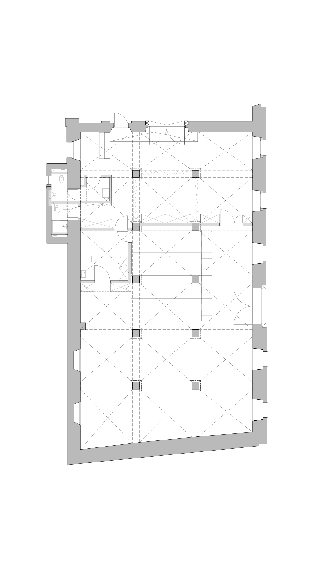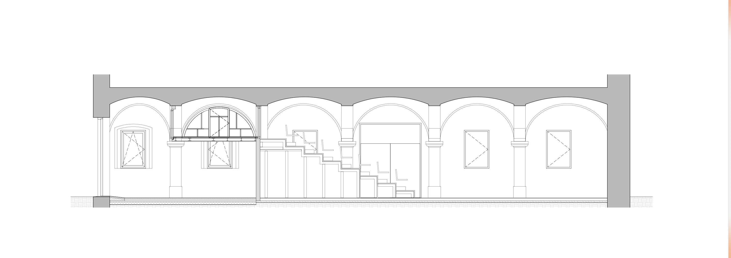 Opisani projekt se je začel iz preproste potrebe po sodobnejsih sanitarijah za gledalce in igralce, ki jo zaradi miniaturnosti zaodrja ni bilo moč umestiti drugam kot v javno vstopno obokano avlo,  zato je poseg namesto male funkcionalne intervencije postal celostna arhitekturna poteza arhitektke Petre Marinšek (Studio Rumena) s sodelavci. Arhitektka je najprej odstranila vse predelne stene poprej prezidane avle in s tem ustvarila prostorno historično lupino preddverja z markantnimi ometanimi oboki, podprtimi s kamnitimi štokanimi stebri iz sivega podpeškega kamna. Prostor je očistila in omete pobarvala belo kot antipod črni notranjosti dvorane. V preddverje, ki po prenovi deluje kot večnamenski prostor za dogodke, je umestila nujni podaljšek novih sanitarij kot prostostoječi boks, ki ne zmoti lepe stare geometrije lokov, saj je od njih ločen. Ker je historično lupino ‘le’ subtilno prenovila v njeni naravni skladnosti, je lahko le-ta postala platno za sodobnejše in grafično iskrive poudarke. Zaradi izredne majhnosti – glede na program gledališča, ki potrebuje fleksibilno in zahtevno tehnologijo inštalacij ter prostor za shranjevanju rekvizitov ipd. – je bilo umeščanje površin za shranjevanje prioritetna naloga. Vgradno pohištvo, ki ostaja belo, je izvedeno v detajlno kompleksni kombinaciji industrijskih materialov (barvana OSB plošča in barvana kovinska mreža), medtem ko je notranjost sanitarij osončena z živo rumeno keramiko. Za pestro grafično plat prostora je, tako kot bi to v arhitekturnih projektih morala biti praksa, v ekipo vključila tudi oblikovalce. Mina Žabnikar in Ivian Kan Mujezinović (Grupa Ee) – oblikovalca, ki že leta snujeta grafično podobo Gleja – sta sodelovala pri zasnovi interiera. Tlak sekajo naključne poševnice, ki ločujejo velike črne in bele zaplate epoksidne barve. Nova geometrija in nenavadno merilo spodnašata red, kar Gleju pristoji. Klopice za posedanje v preddverju so oblazinjene z avtorskim tekstilom, oblikovanim posebej za ta projekt. Najbolj prešerni pohištveni kosi pa so blagajna in premična pulta iz reciklirane plastike tandema Nine Mršnik in Nuše Jelenec (kolektiv Toasted). Modri, rdeči in črni plastični kosmiči iz zavrženih embalaž mehčalcev in šamponov, pretopljeni v teraco iz pečene plastike, ki se lahko kadarkoli ponovno reciklira, na novo zadišijo v družbi rumene kopalnice kot mondrianovski parfumček sicer barvno dosledno zadržanega arhitekturnega ozadja.