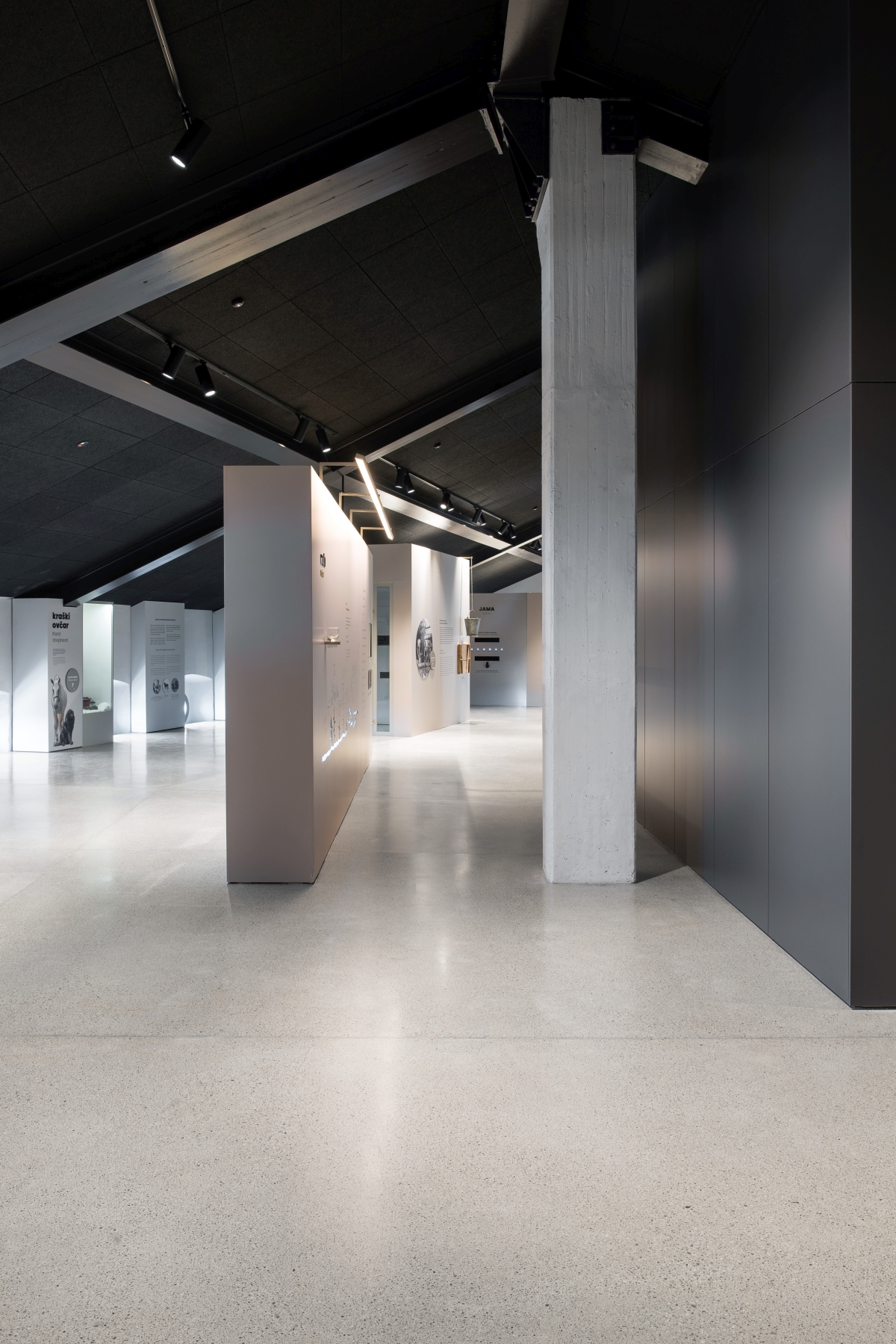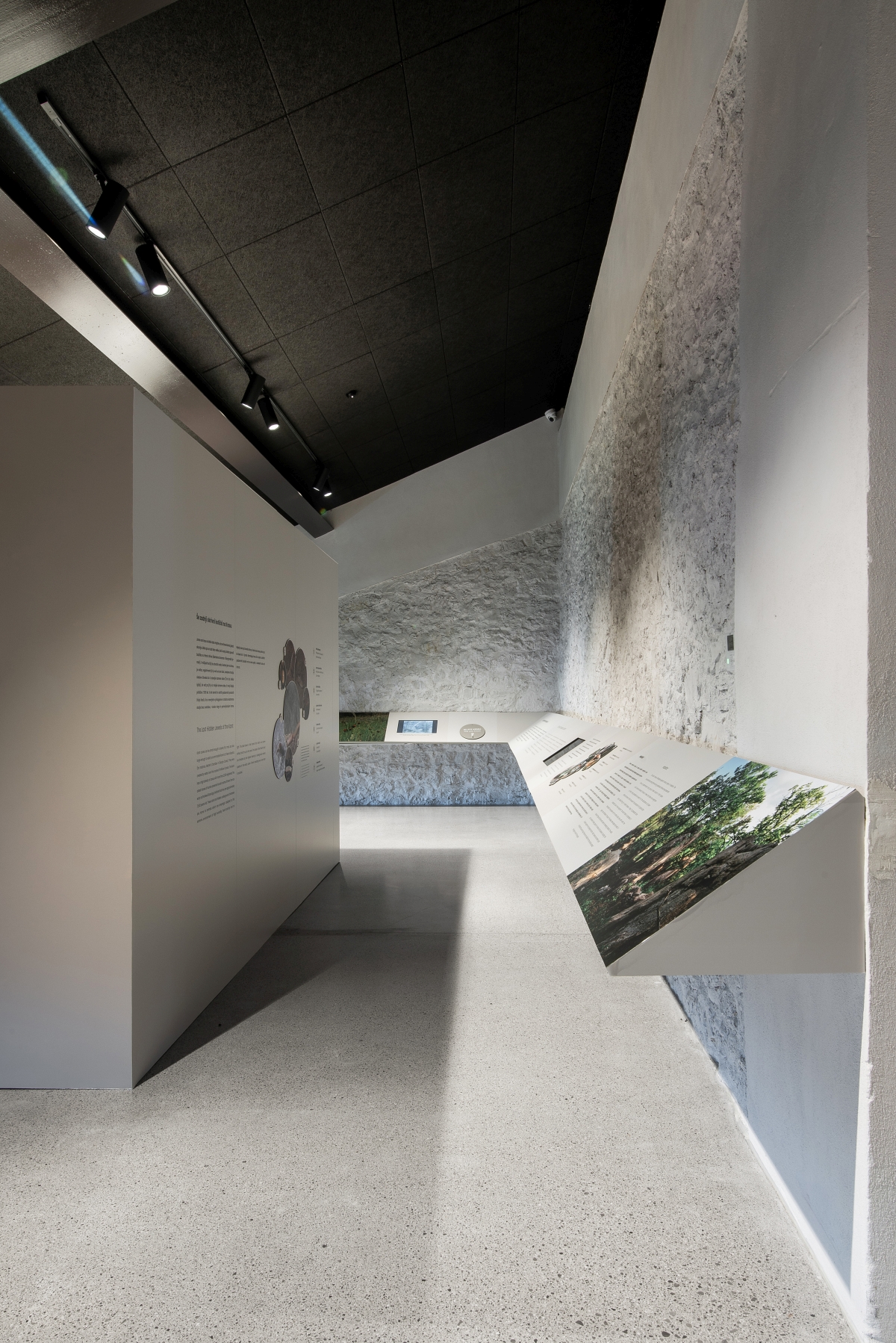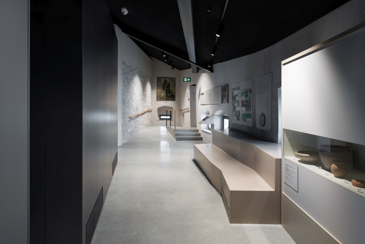 »Prenova je na ta način enostavna in čista ter prepušča pozornost obiskovalca vsebini in jeziku kamna, ki se neposredno zrcali na novih površinah, in s tem dvojno odzvanja. Tako stekleni volumni kot črni kubusi in strop predstavljajo temno ozadje in paspartu obstoječim belim stenam z jasno strukturo kamna, ki je glavno tvorivo Krasa,« razmišljata avtorici prenove.
