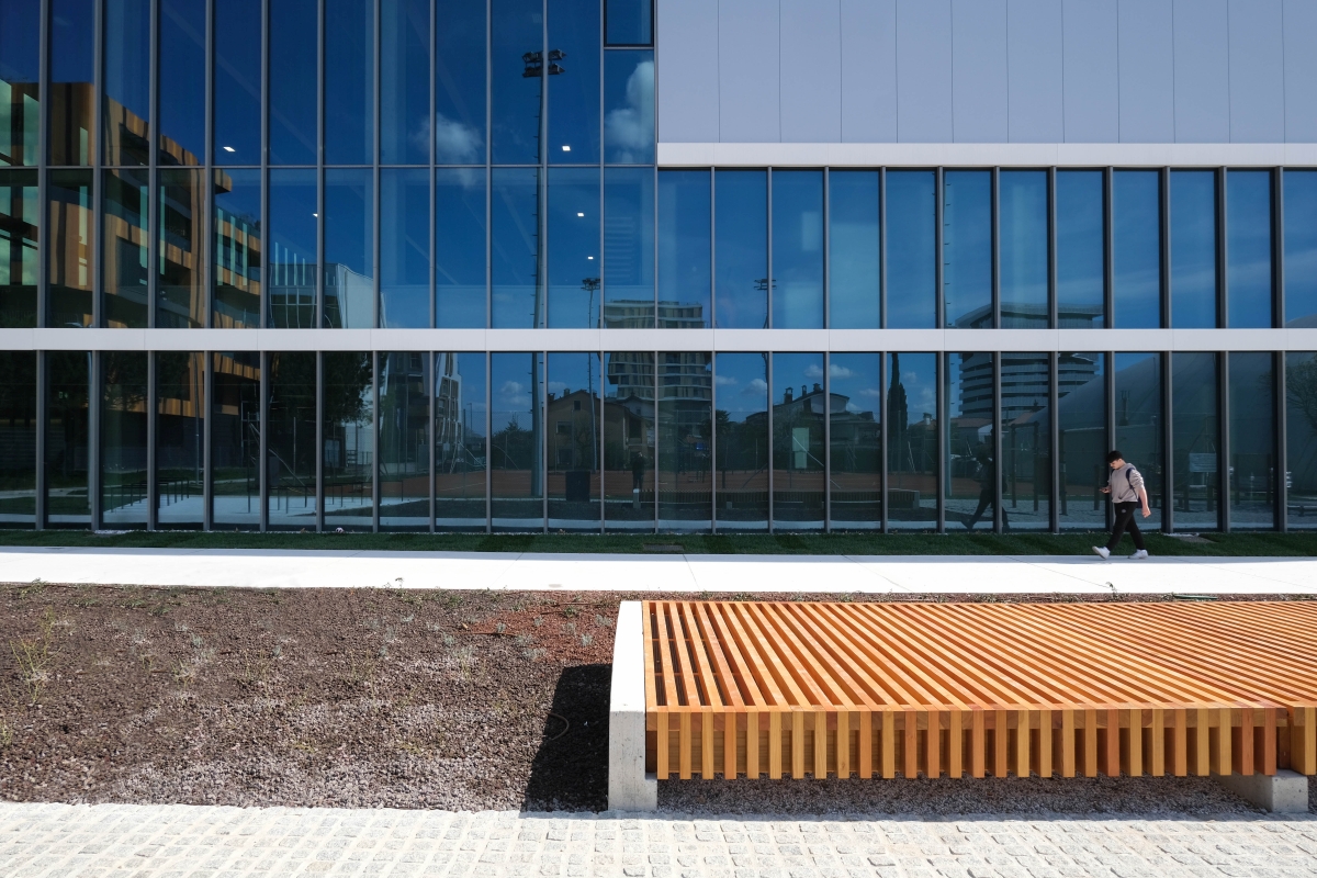 »Fasada ima kovinski lesk, s čimer smo še dodatno podčrtali dejstvo, da gre za tehnološki objekt oziroma stroj, v katerem imajo glavno besedo stroga funkcionalnost in tehnično napredni inštalacijski sistemi,« pojasnjuje Savelli.