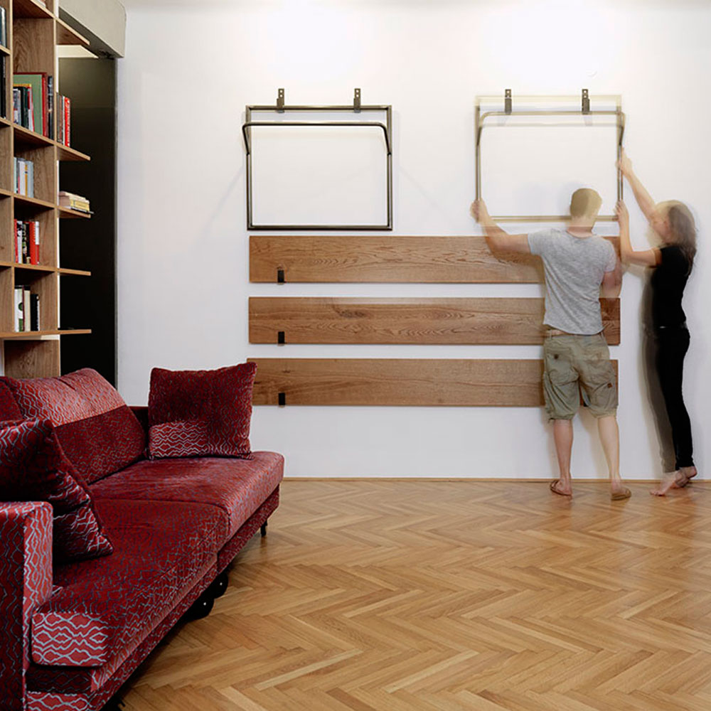Mizo stanovalci po potrebi sestavijo oziroma zložijo na steno.