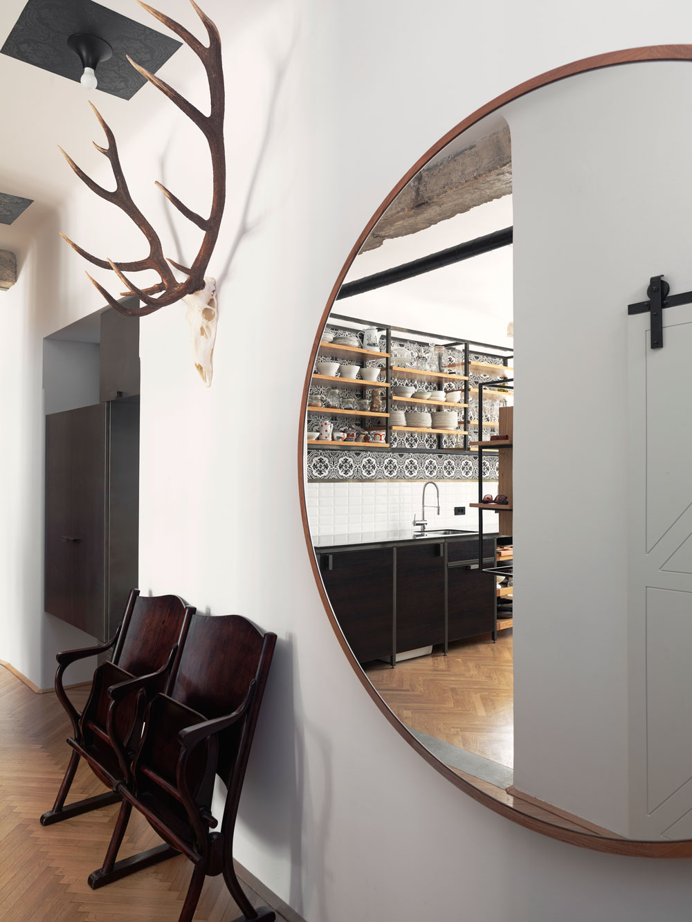 Arhitekt Andrej Mercina je pečnice s stare peči shranil in jih uporabil pri dekoraciji stanovanja.
