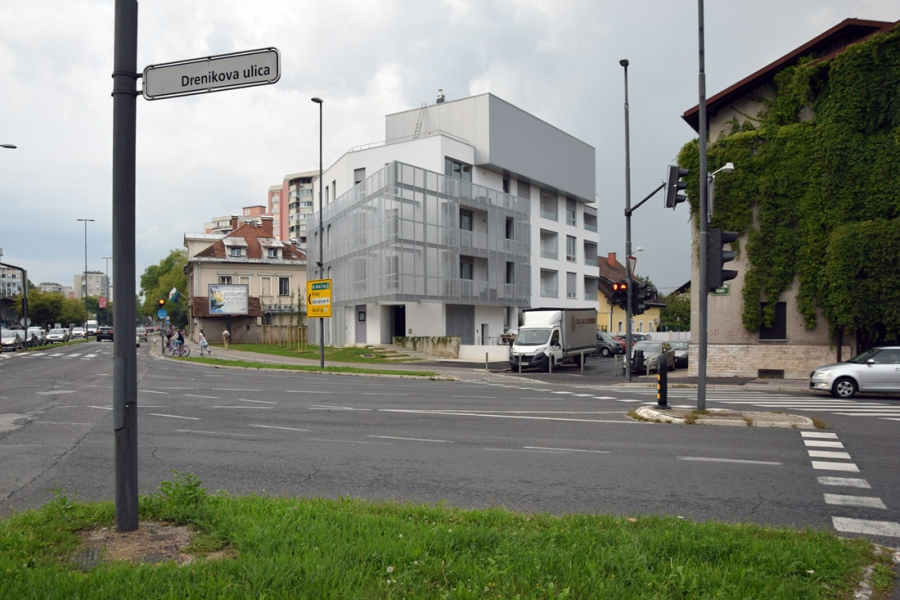 V Ljubljani so ravnokar dogradili novo stavbo na vogalu Celovške ceste in Drenikove ulice. Ta lokacija je ena bolj zanimivih v Šiški. Zgoščena gradnja, historično tkivo in križišče dveh pomembnih urbanih žil so izhodišča za zanimivo in razpoznavno urbano potezo. Zahodni rob križišča ob Celovški definirajo modernistični bloki, vzhodni pa je bil doslej neizkoriščen in je s tem pomenil velik potencial. Razen oglasnih panojev tega potenciala ni nihče uresničeval.