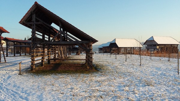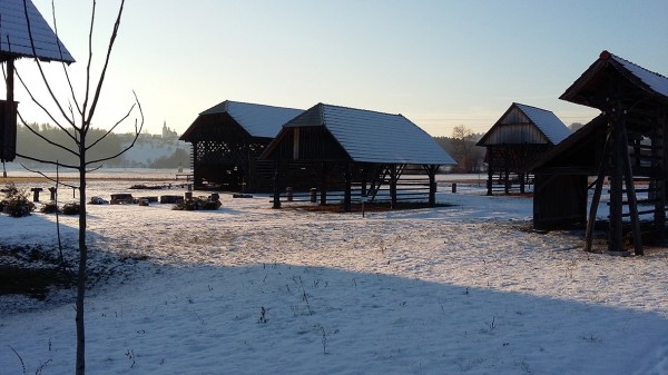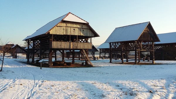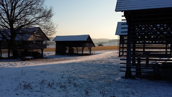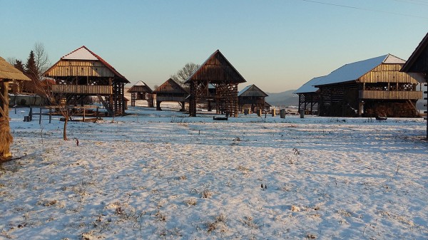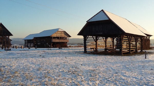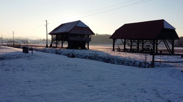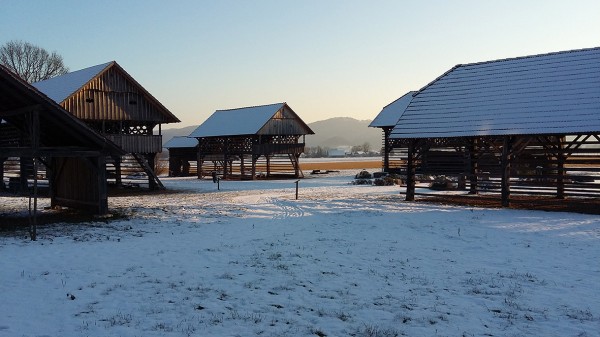 Gruča kozolcev spominja na znamenite studorske kozolce pri Bohinju.