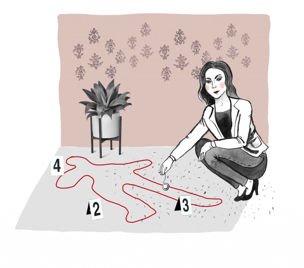 Po zaslišanju družinskih članov in zaposlenih v biroju je tabla PRIMER: KOKON prekrita s fotografijami vpletenih, skicami trupla iz različnih kotov, forenzičnimi izvidi in zapiski o alibijih (slabih in zato verjetnih), koristih in neugodnostih, ki jih je za posameznega Hagenbohma utegnila povzročiti Danielova smrt. Po tednu preiskave PRIMERA: KOKON je višji inšpektor Paddy Scotch tik pred tem, da aretira Klementino Hagenbohm.