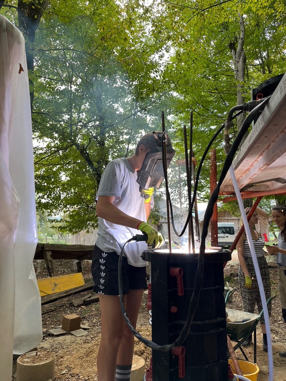 Če povzamemo drugi dan: štiri udeleženke in en udeleženec delavnice so se naučili variti železo medtem, ko smo zgradili dva nova stebra. In zakaj je pomembno, da si arhitekt umaže roke?