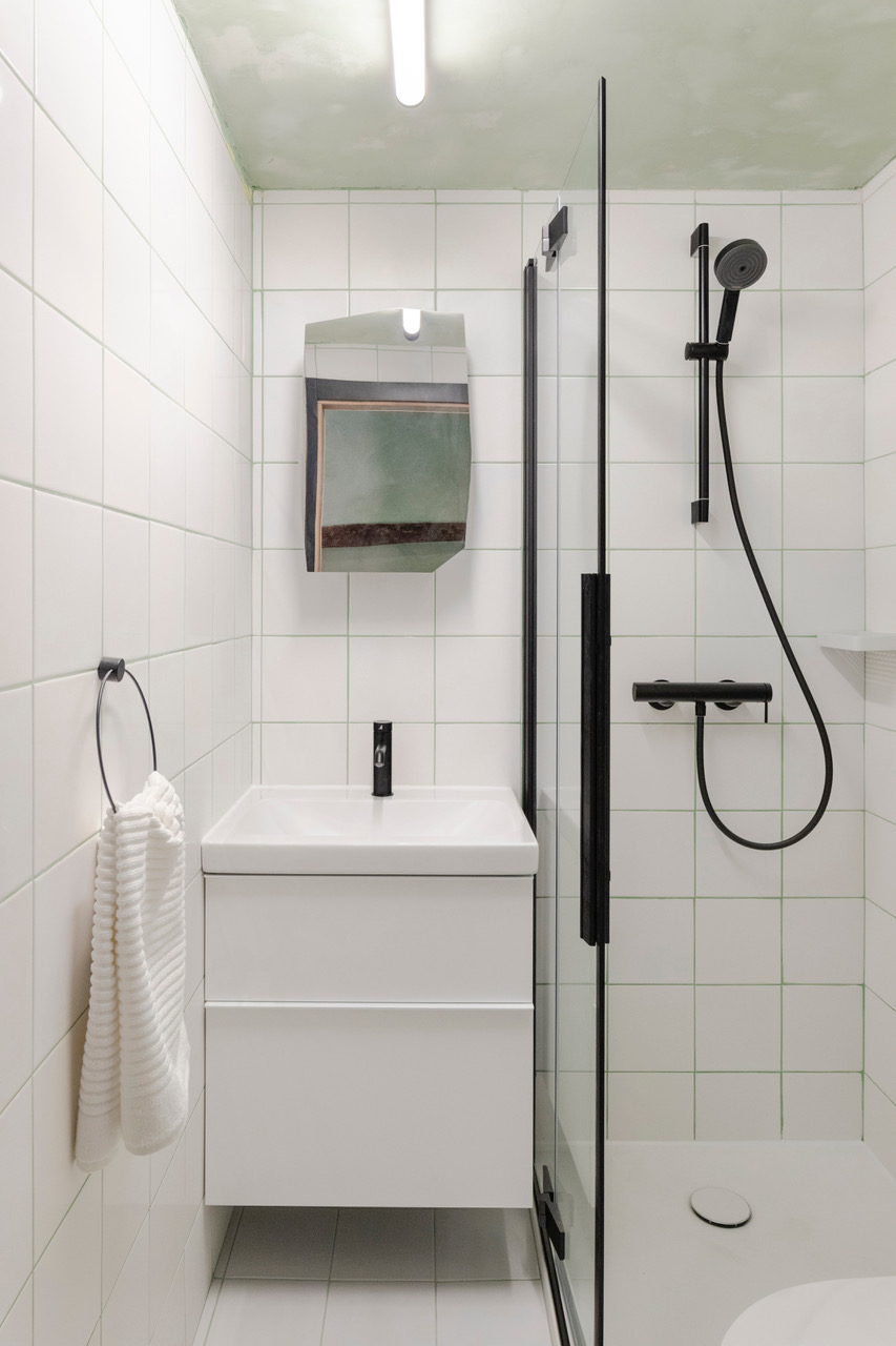 Dve hiši nižje stoji kamnita gradnja, ki sta jo Nina in Matevž prenovila pred štirimi leti in iz nje naredila prostor odmika zase in za tri otroke. In seveda Bena, kužka, ki je med pandemijo nekako prišel v njihovo družino in zdaj cele dneve dežura pred vrati in kontrolira lokalne mačke, ki poležavajo po kamnitem ambientu in se preganjajo po zelenem parku. Ko vidiš, kako sta arhitekta preuredila tisto staro hišo, še bolje razumeš, kako sta se lotila prenove oživljene Zelenke in spoznaš njun arhitekturni pristop. Takoj ob vstopu v prenovljeno hišo, ki je postala palača, postane jasno, da sta sledila instinktu, da bi spustila v prostor čim več naravne svetlobe in sprostila čim več prostora, brez kakršnih koli posegov, ki bi okrnili prikrito veličino, ki sta jo slutila. Eno etažo nad pritličjem sta odprla, da bi iz nivoja kuhinje in dnevne sobe dosegli višino celih petih metrov, in vnesla vzdušje kamnitega bogastva, oplemenitenega z lesom. In tudi če tega ne bi poudarjali, bi se čutilo, da pri prenovi ni bilo nič vrženega stran. Iz ruševin in prahu so zamešali teraco, iz lesenega poda naredili visečo knjižnico in vse ohranili, le z nekoliko spremenjeno namembnostjo, a tako, da nista izbrisala niti koščka časa, ki tam prebiva.