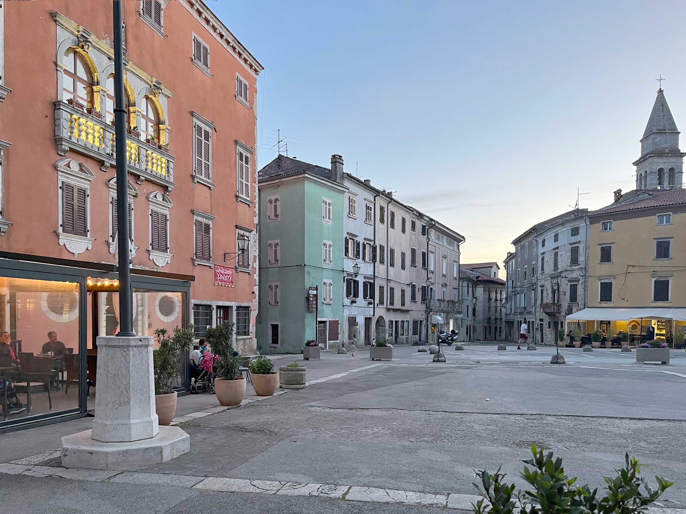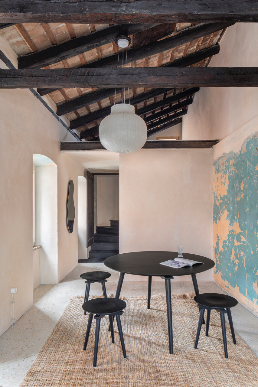 In potem tam, na enem vogalu glavnega trga, ozeleni. Iz pritličja se povzpnem v prvo nadstropje, nato v drugo, a največje razburjenje ponudi zadnje, kjer je gostoljuben prostor v vlogi dnevne sobe in galerija, kjer lahko prespiš. Arhitekta sta odstranila etažo, da bi pridobila višino in zanimivo prostorskost – raumplan, kot rečeta. Z okna, ki gleda na trg, se lepo vidi zvonik cerkve sv. Blaža, najvišji v Istri, a s svojim šarmom me pokliče okno na nasprotni strani hiše, ki gleda na strehe enako starih stavb in ponudi vznemirljivo igro linij, svetlobe in seveda domišljije, ki takoj sestavi nove zgodbe o ljudeh, ki so vse to zgradili, in o tistih, ki tam živijo zdaj.